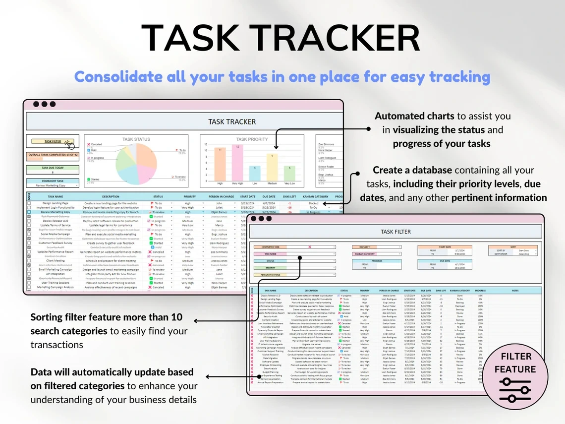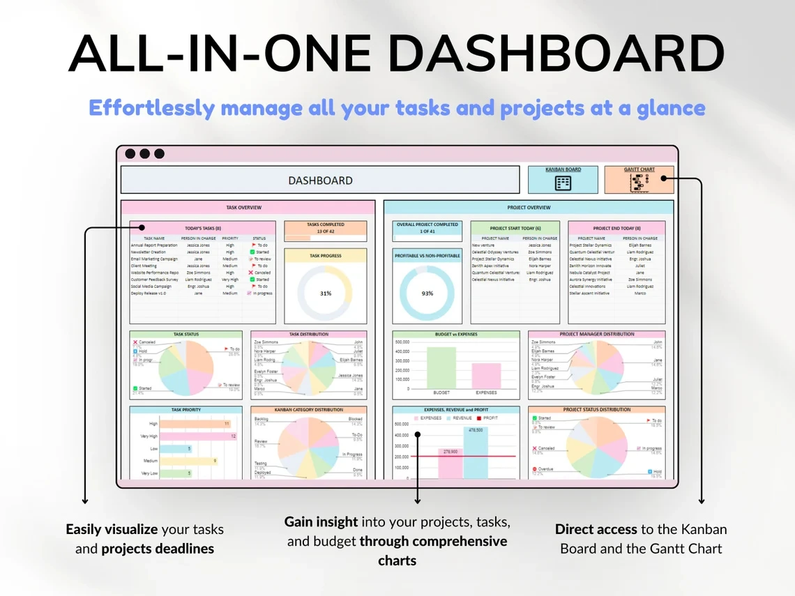 All in One Project Management Tools- for Small Business Project Planner, Task Tracker, To-Do List, Gantt Chart, Kanban Board